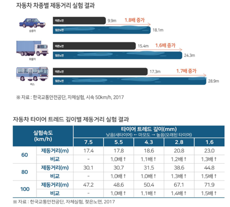 미끄러운 도로에서는 제동력이 절반 이상 안전을 좌우합니다.